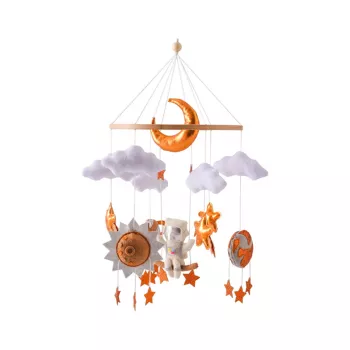 Baby Wooden Bed Bell Rattle - Soft Felt Spaceman Crib Mobile for Newborns